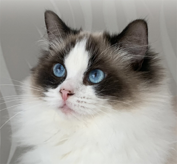 Unsere Adel hat die wunderschöne Farbe seal bicolour und hat tolle blaue Augen. Da der Charakter für mich in der Zucht eine genau wichtige Rolle wie das Aussehen spielt -kann ich nur sagen, sie ist die typische Ragdoll! Eine ganz liebe und neugierige Schmusemaus, die super mit Kindern zusammen spielt.