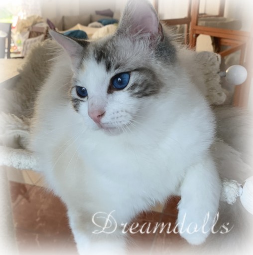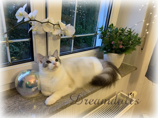 Unsere Queeny ist wirklich eine ganz besondere Katze. Ihre tiefblauen Augen sind der absolute Wahnsinn und das habe ich in dieser Intensität noch nie gesehen. Für ein Mädel hat sie auch eine super Größe. Queeny ist sehr anhänglich und lieb, den anderen Katzen gegenüber aber auch sehr willensstark, Ich denke sie wird mal die Chefin der Gruppe.